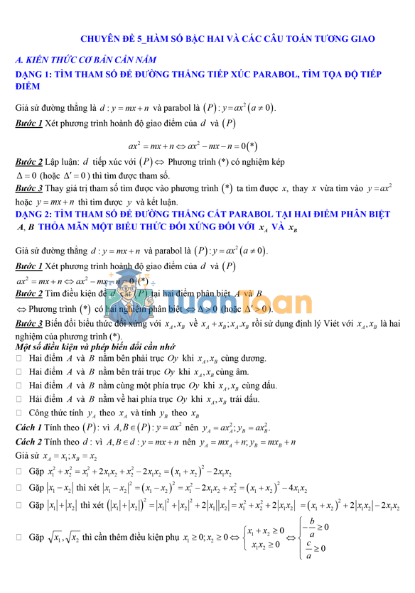 Nếu bạn từng thấy phần hàm số bậc hai “khó nhằn”, thì vấn đề không phải ở độ khó, mà là ở cách tiếp cận. Khi học đúng dạng, đúng phương pháp, mọi thứ sẽ trở nên dễ kiểm soát hơn rất nhiều. Hãy dành thời gian luyện kỹ tài liệu này, từng dạng một. Chỉ cần nắm chắc 5 dạng trên, bạn đã có thể tự tin xử lý phần bài toán tương giao trong đề thi vào 10. 🚀
