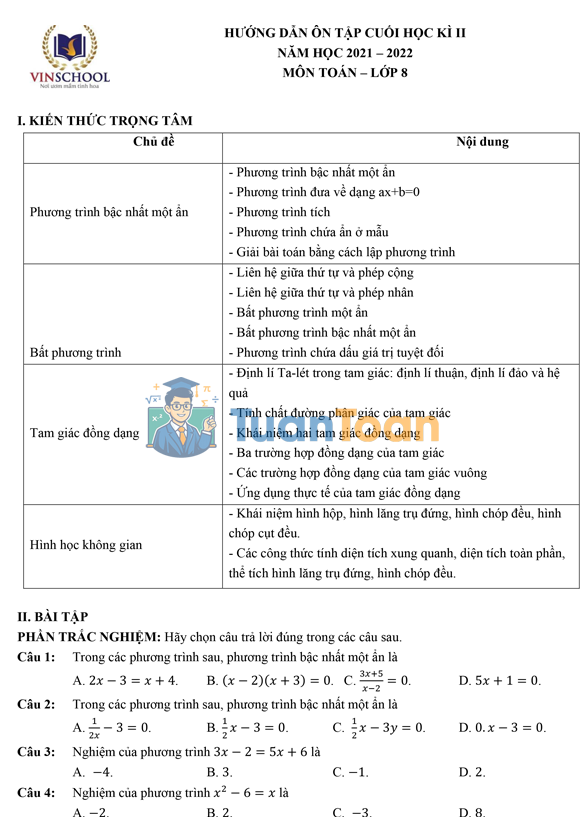 - Nội dung: Xác suất – Hình học không gian – Oxyz