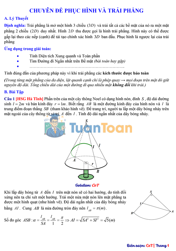 Chuyên đề trải phẳng và phục hình là một trong những công cụ mạnh trong giải toán hình học không gian. Tài liệu của tác giả CeT không chỉ giúp học sinh hiểu bản chất phương pháp mà còn biết cách vận dụng linh hoạt vào từng dạng bài cụ thể.
