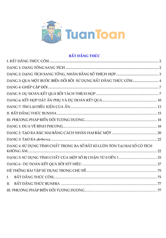 Với định hướng chia sẻ tài liệu chất lượng, dễ hiểu và bám sát thực tế thi cử, TuanToan.com mang đến cho học sinh nguồn học liệu giúp tiếp cận dạng toán này một cách có hệ thống, từ cơ bản đến nâng cao. Tài liệu không chỉ cung cấp phương pháp mà còn giúp học sinh rèn luyện tư duy biến đổi và kỹ năng trình bày chặt chẽ.